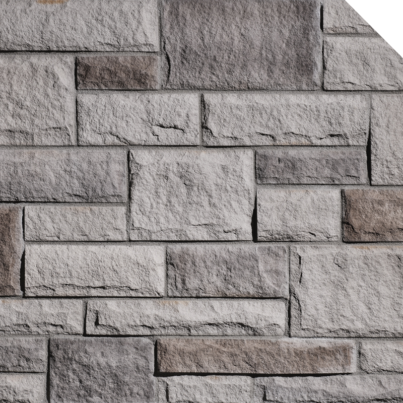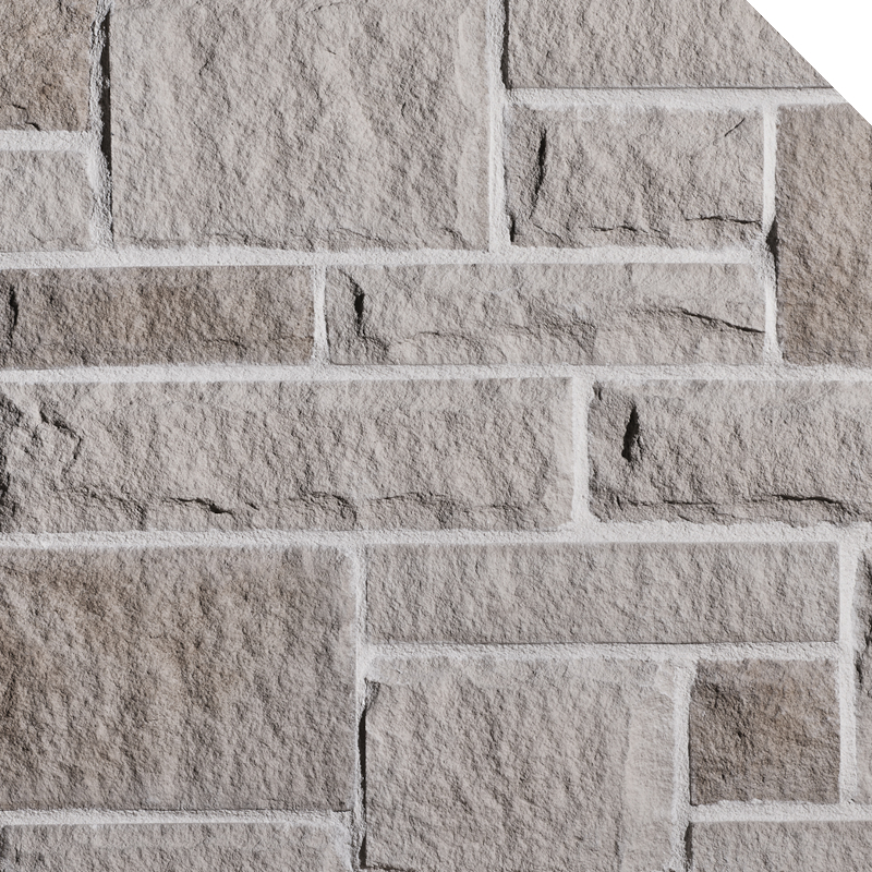 Hauteur coin : 4″ / 6″ / 10″Le détail et la texture de chaque pierre reflètent fidèlement ceux de la pierre naturelle. À l’intérieur d’une surface de 100 pieds carrés, dont le poids varie de 10 à 12 lb le pied carré, vous ne retrouverez aucune répétition de pierres.